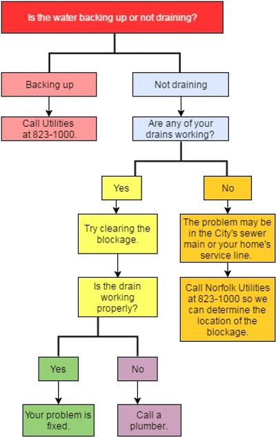 As a service to customers, Norfolk Utilities will send a crew to your address. The crew will clear the stoppage from the cleanout at your property line to the City’s main line at no cost to you. Norfolk Utilities can clear only municipal lines and cannot work on your private plumbing. If they have cleared the line from your cleanout to the sewer main and the stoppage continues, the blockage is located in your private line. In that case, you will need to call a plumber.